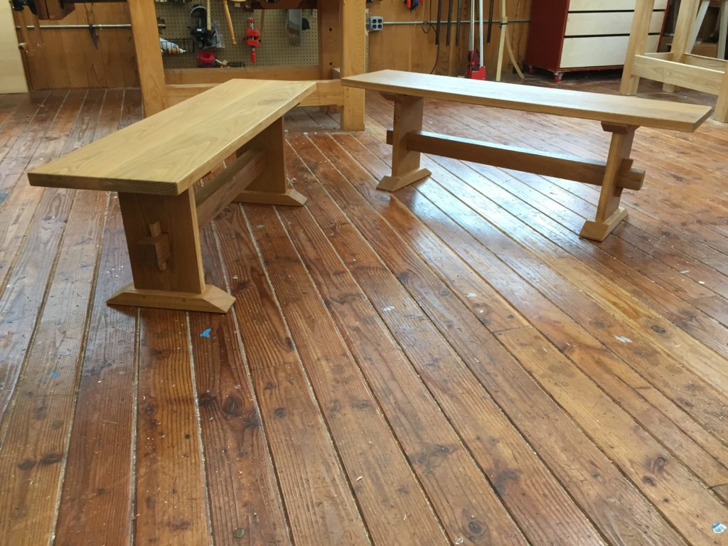 I designed and built these white oak dining benches to match a recently built table. A customer’s son had made a table for his brother’s wedding and asked if I would make two, white oak benches to match. I was able to match the color and finish of table and get everything out the door before the wedding.